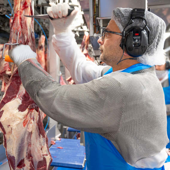 Jag har jobbat i 26 år. Efter gymnasiet sökte jag jobb via arbetsförmedlingen och då kom det upp en annons från Scan Sverige om styckare som jag sökte och kom in på. Där och då ville jag mest bara ha ett jobb men jag visste lite vad det innebar då jag har släktingar som arbetat inom branschen. Jag är praktiskt lagd och gillar att arbeta fysiskt och då passar det här yrket väldigt bra. Sen gillar jag att man kommer till jobbet, gör det man ska och sen går man hem. Det är skönt att släppa arbetet helt efter dagens pass. Jag jobbade med styckning i cirka 17 år innan jag började hålla utbildning.